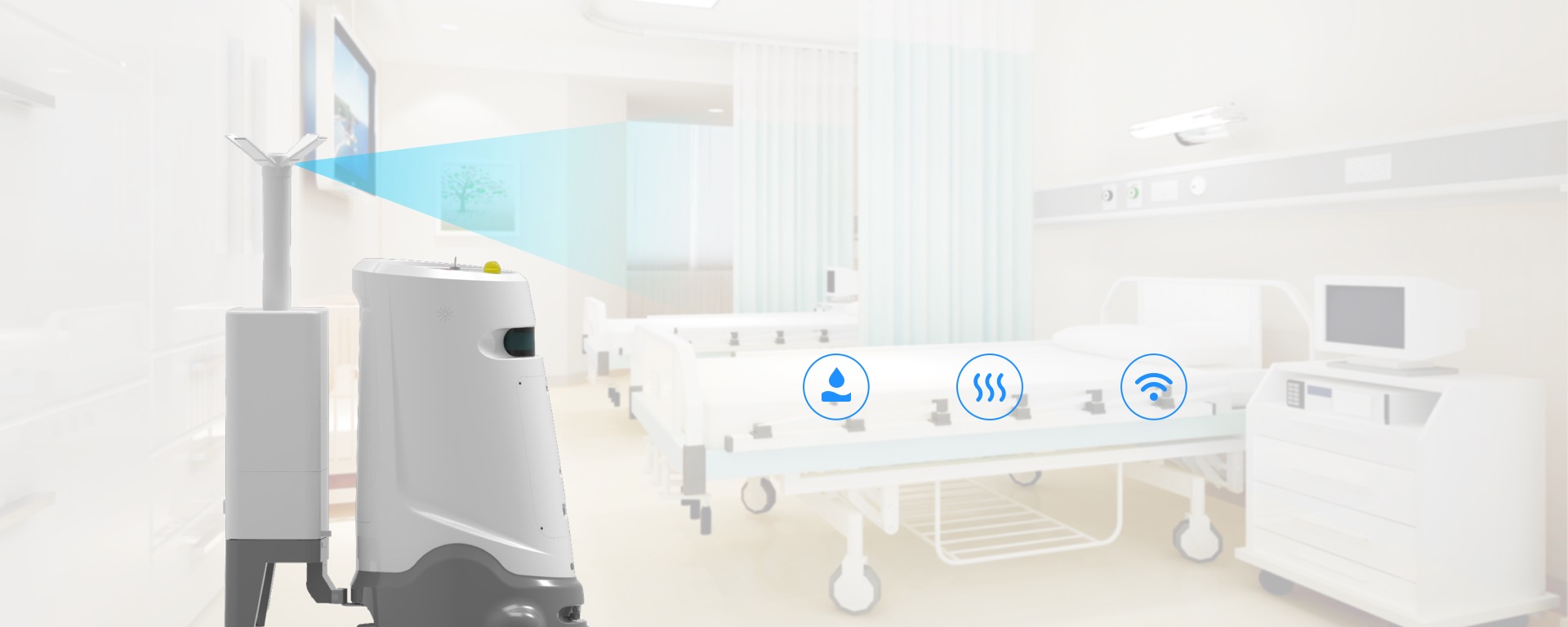 配备雾化超声模块,清扫消毒同步进行